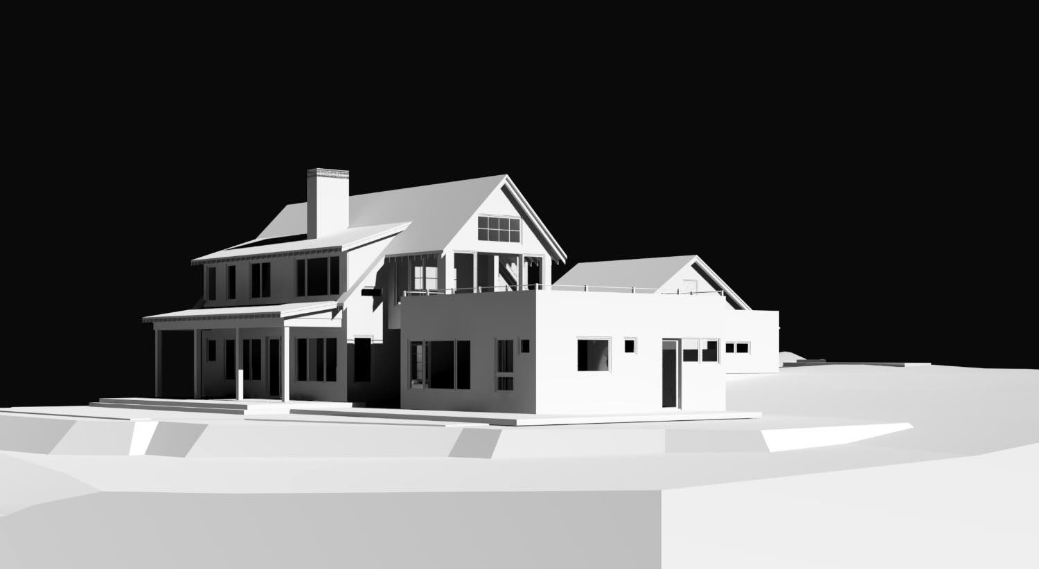 This approach of distinct volumes lets each part of the house work on its own terms while creating a composition that feels considered rather than arbitrary. The farmhouse language keeps it grounded, and the site work with the slope instead of fighting it.