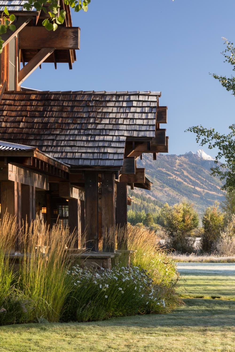 This home sits in open meadowland with mountain views stretching in every direction. The site called for architecture that felt like it had been here for generations, something that belonged to the landscape rather than imposing on it.