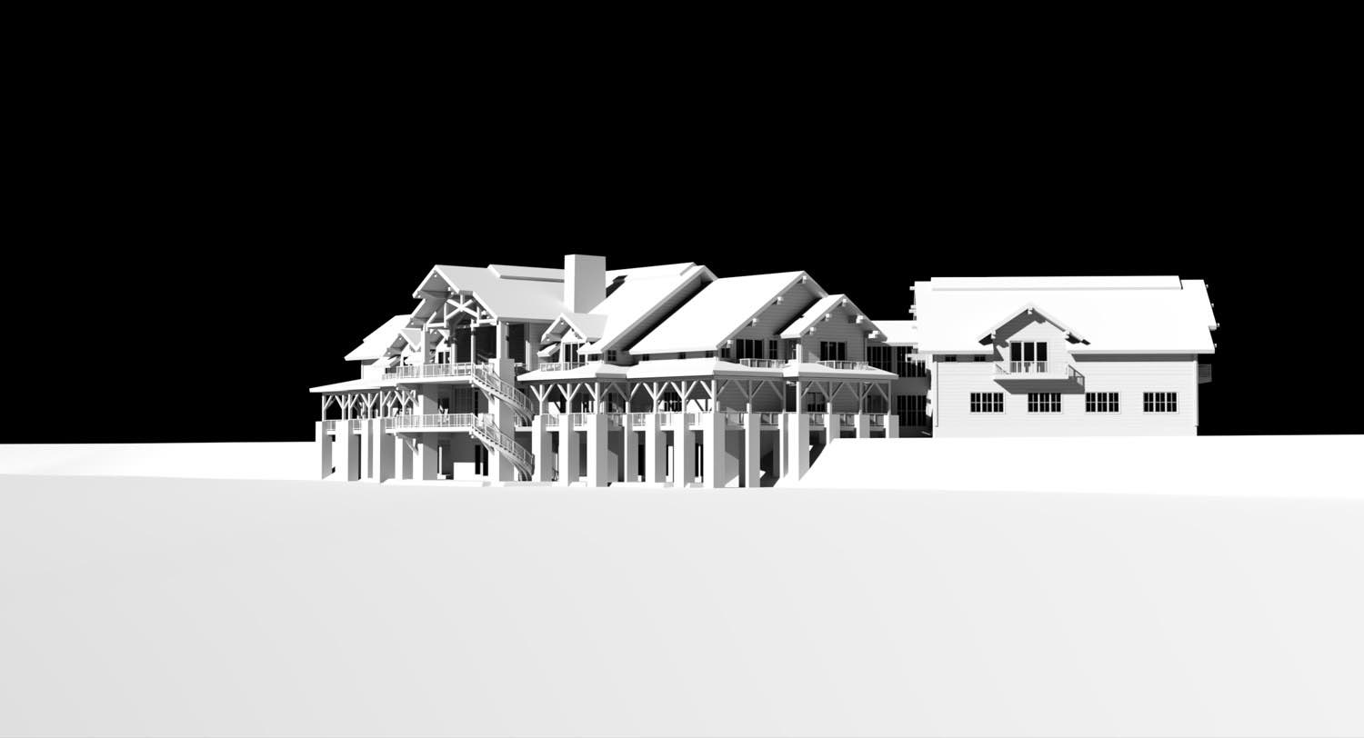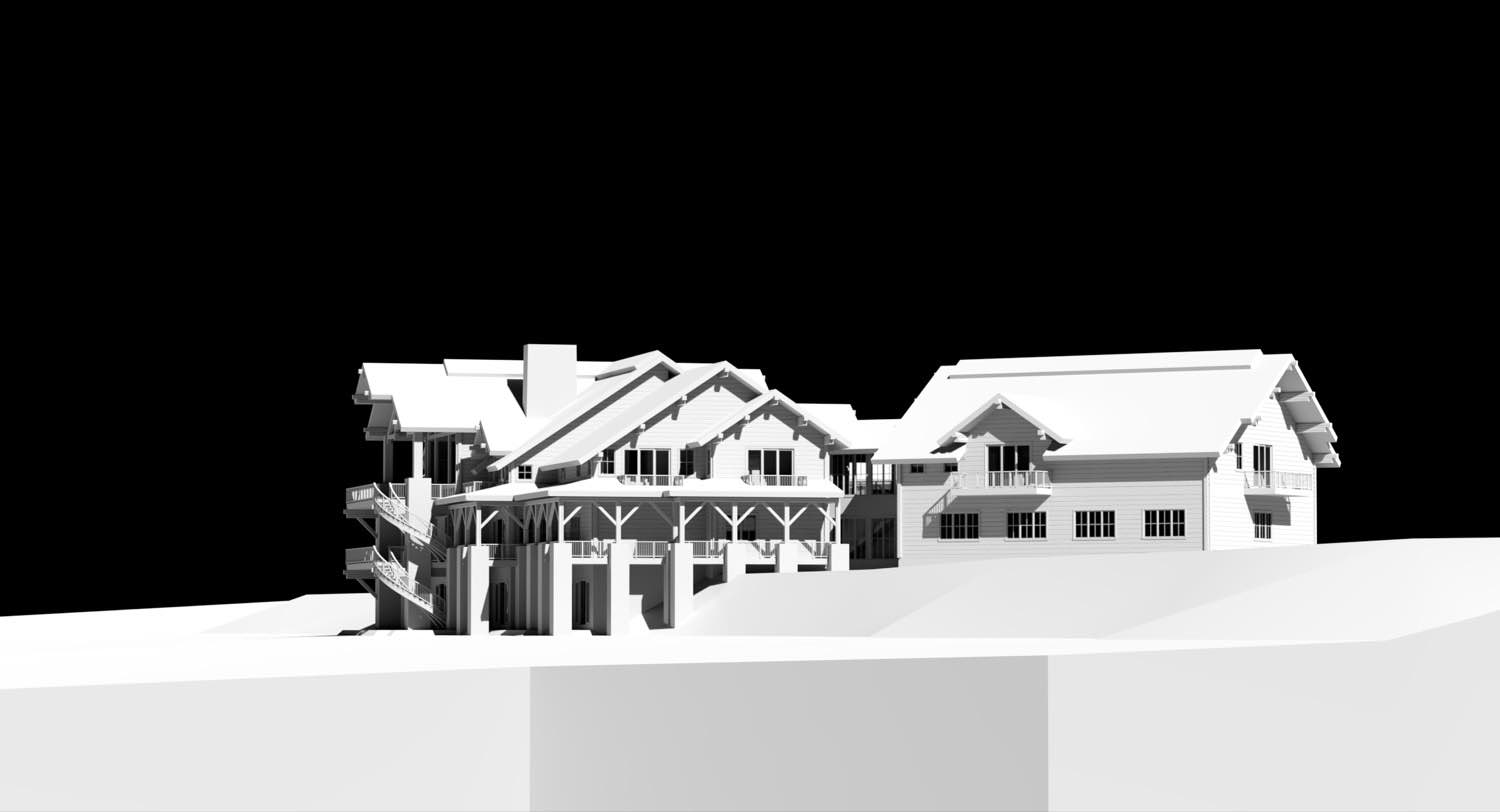 We designed this lodge around the structural possibilities of timber framing. The exposed framework creates a rhythm across the building that organizes both the architecture and the experience of moving through it.