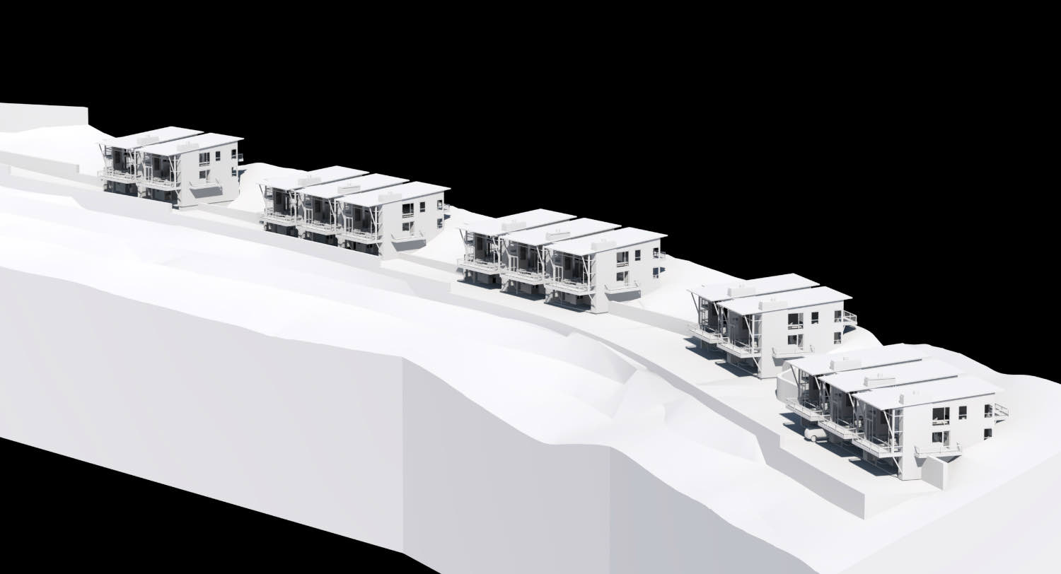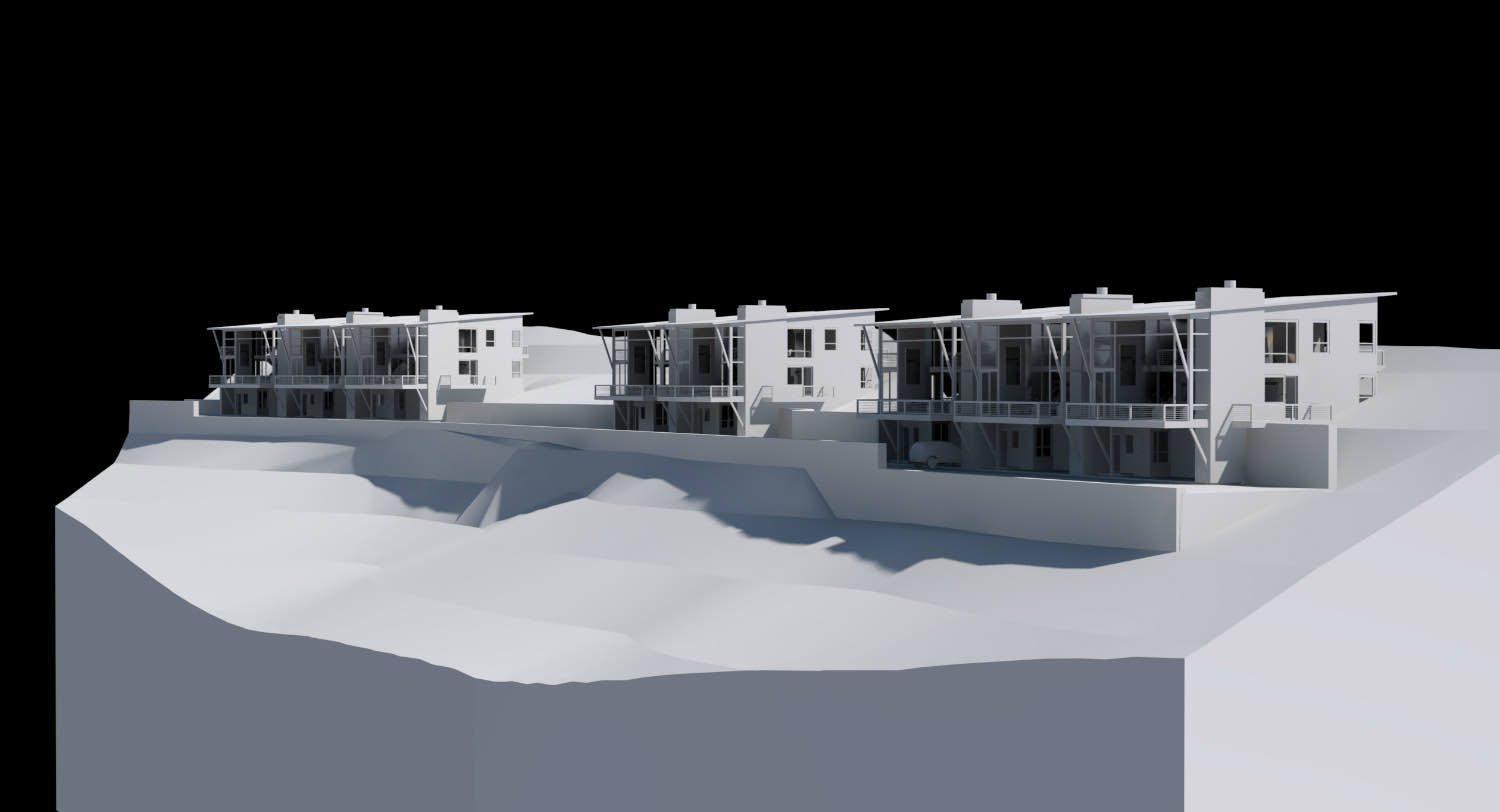Steep sites create design challenges that flat lots don't. When you're working on a slope, every decision about foundation, access, and how the building steps with the terrain affects both construction cost and how people experience the architecture. This townhome development shows one approach to making slope work in your favor rather than fighting it.