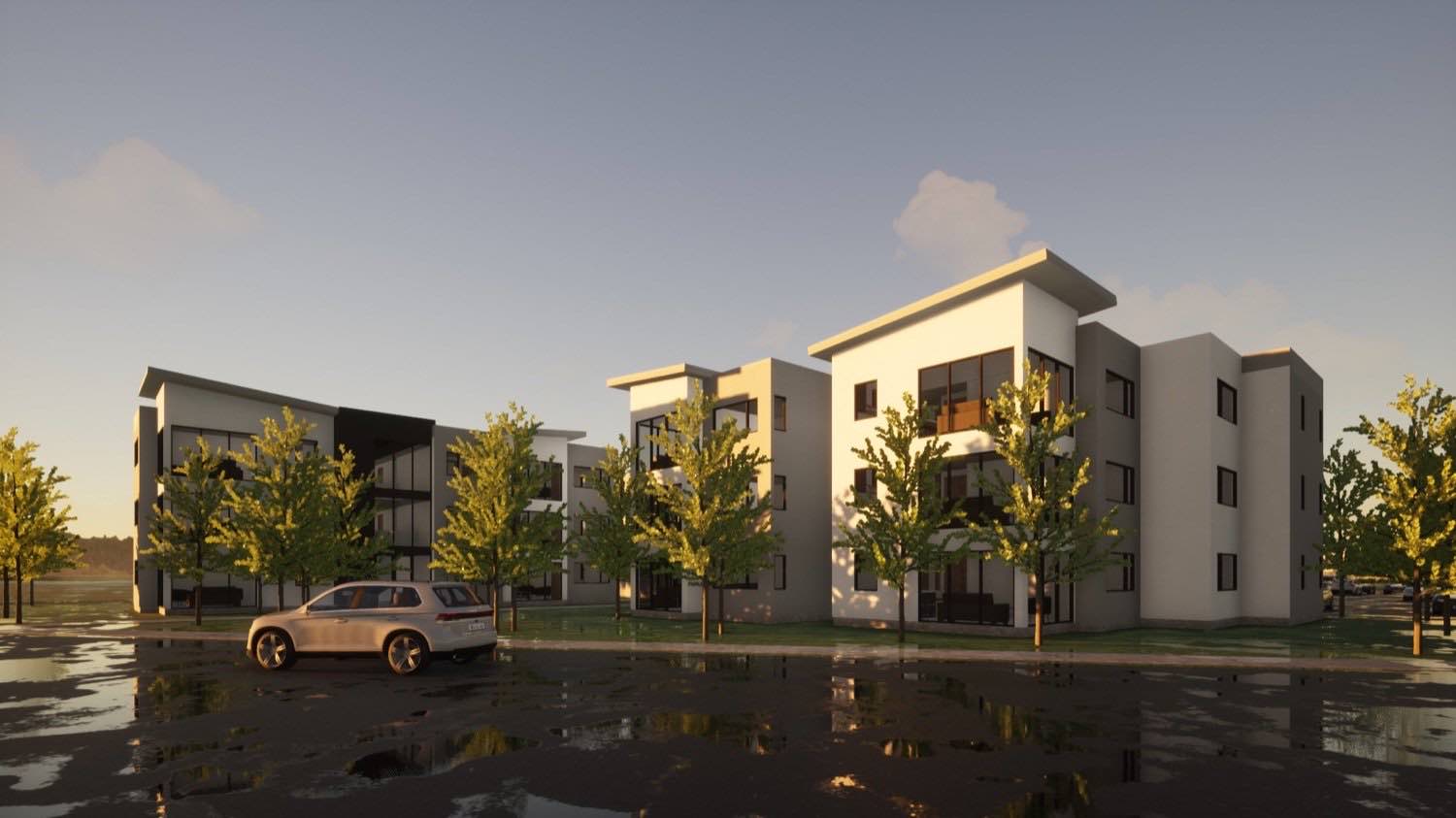 The three-story scale keeps things human. Taller buildings mean elevators and different structural systems that drive up costs. Three stories work with simpler construction while still achieving the density the project needs.