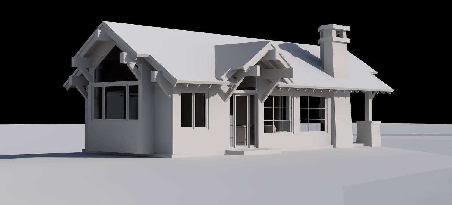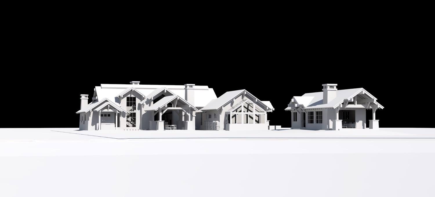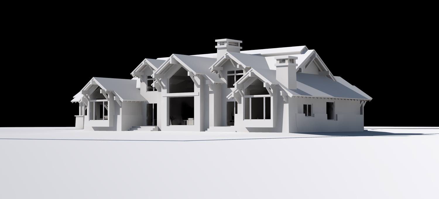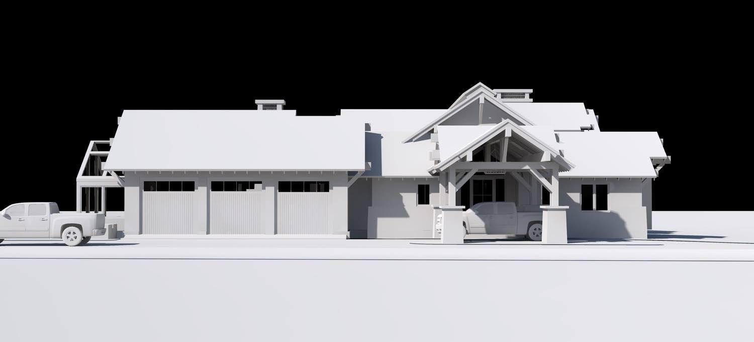 The timber framing is structural, not decorative. We're using it to support the gable ends and create covered outdoor spaces where the roof extends beyond the wall line. Those exposed beams and brackets give the house a mountain vernacular without being heavy-handed about it. The framing expresses how the building is put together.