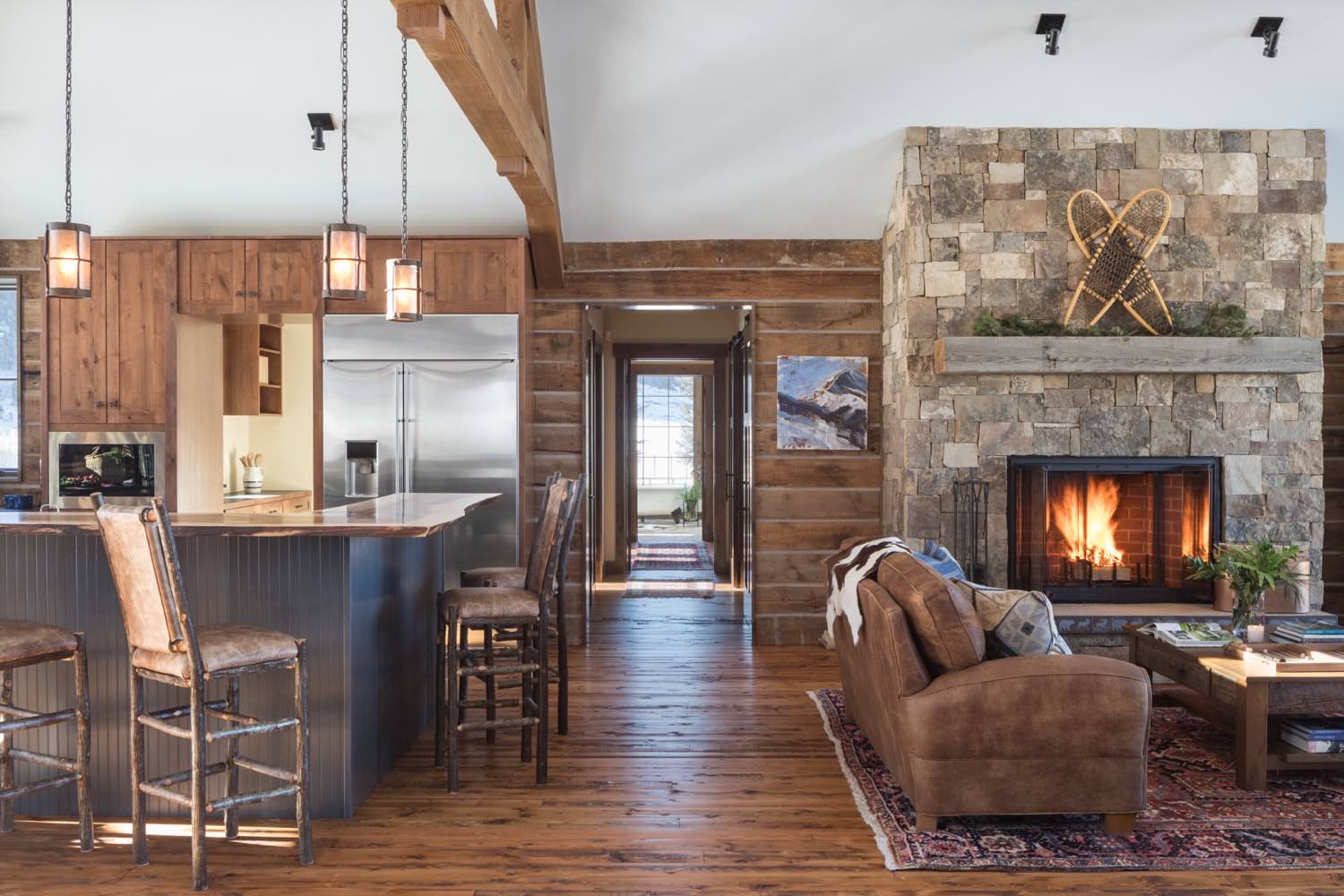 The architecture works because it respects the openness of the site. We kept the building profile low and broke up the massing so it sits comfortably in the valley rather than dominating it. The materials age well in this climate and connect the home to the ranching vernacular that defines this part of Wyoming.