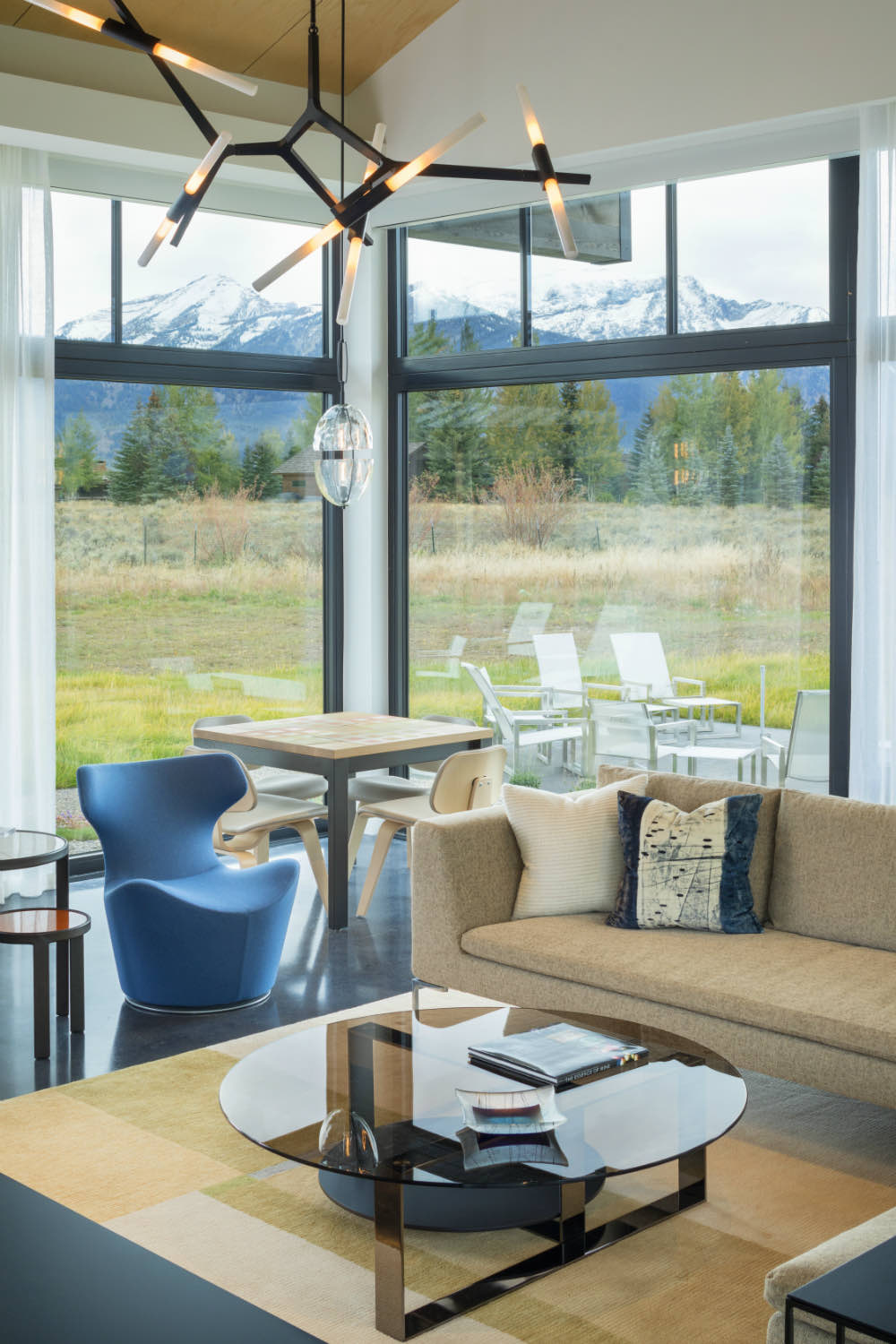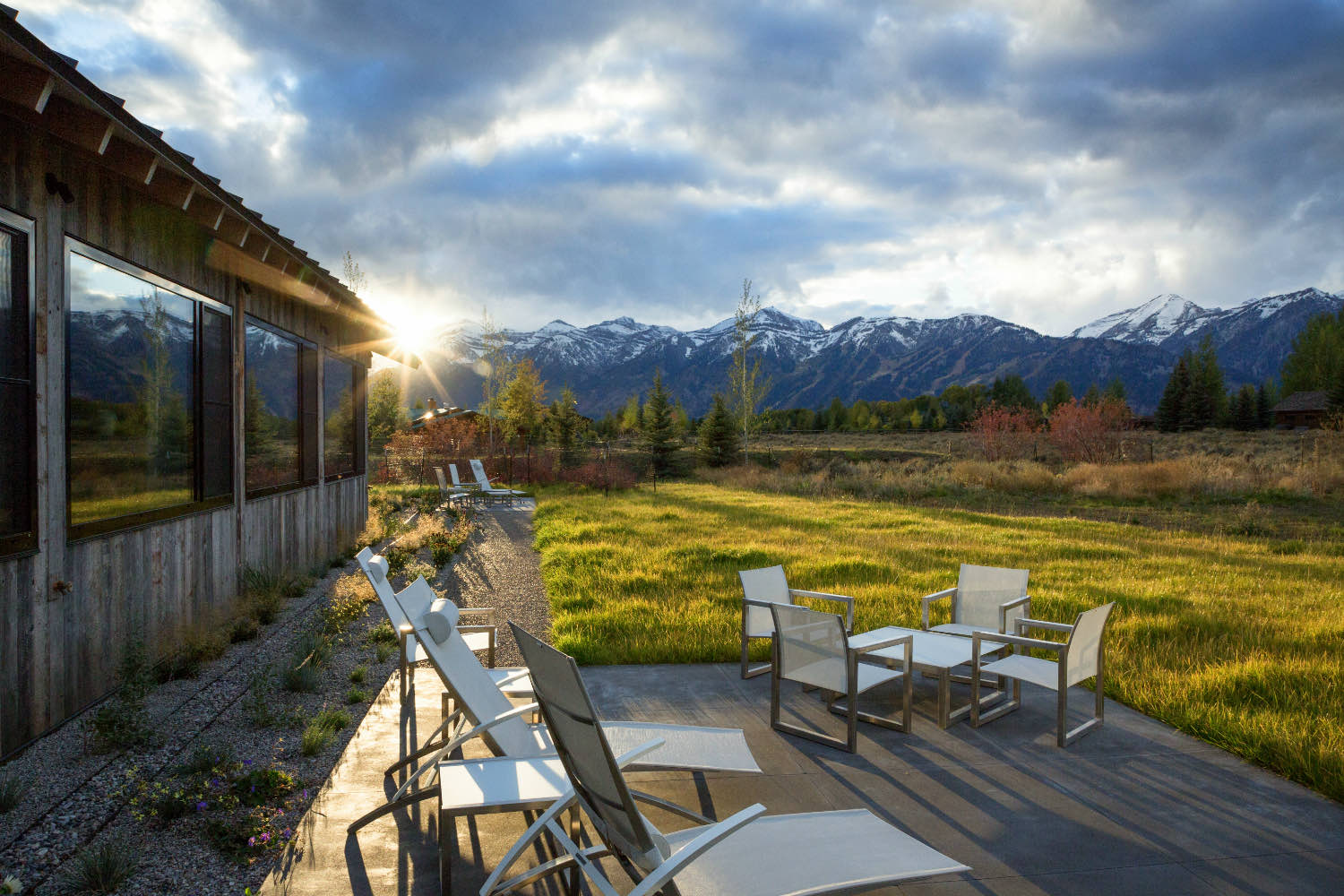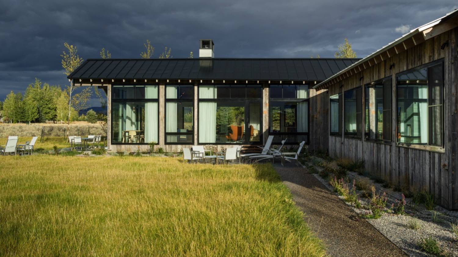 The site is all open meadow with mountains behind. Sagebrush dominates the foreground, native grasses grow in patches, and the landscape rolls gently without dramatic elevation changes. We kept the house low and stretched it out horizontally to match the character of the land.